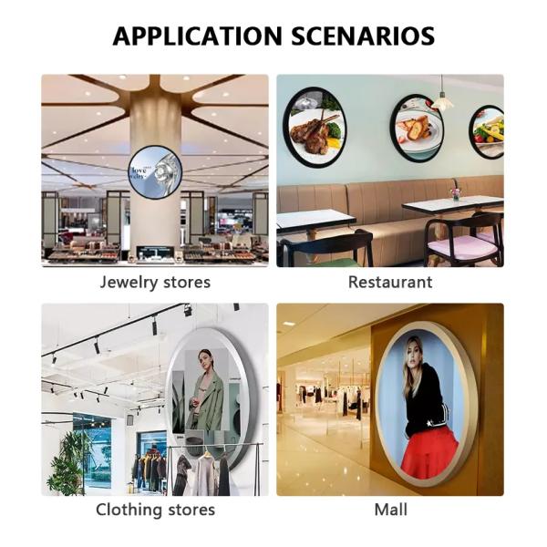 23.6 inch circular advertising screen display has 1500nits high brightness,suitable for install semi outdoor,indoor for display advertisement.Can widely use in many kind of place,such as Jewelry stores,clothing stores,Mall,Restaurant,cosmetic,etc.
